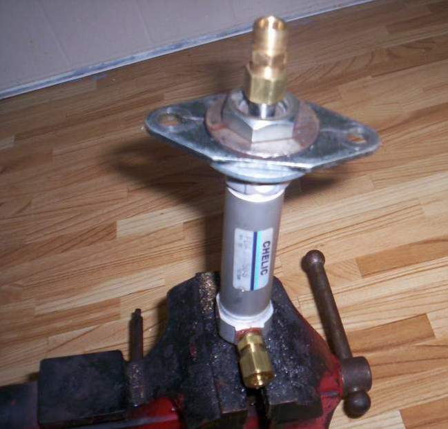 The 1/8”NPT fitting threads into the cylinder port farthest from the extending rod. NOTE: inspect the threads of your fitting before purchasing. You’ll find some have deeper cut threads than others. If the threads on the fitting are shallow, the fitting will screw all the way into the cylinder and bottom out before the fitting is tight and you’ll leak.