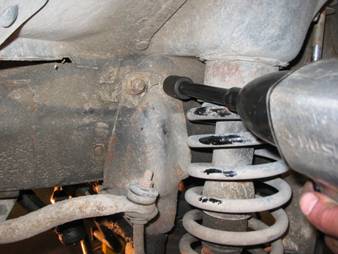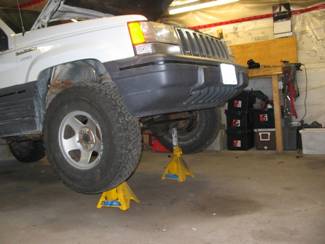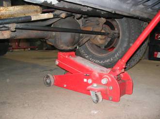 vehicle has been lifted to a comfortable height. Place jack stands under the axle and be