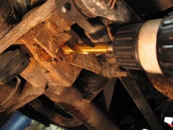 drill out the factory hole with a ½” bit. This will accommodate for the heavier bolts