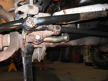 the track bar will now pivot on the bracket where the tie rod style stock one